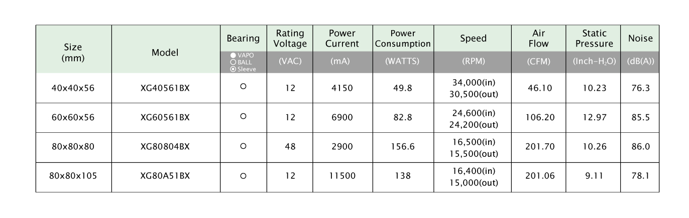 為滿足現代數據中心所要求的超大規模、高效能運算、綠色永續的前瞻愿景,建準AI風扇系列具備更高效散熱,搭配建準客制化液冷技術如直接到芯片冷卻(D2C)、AALC Sidecar等,能在高密度AI服務器的工作負載時迅速散熱冷卻、動態電流監控、煞車保護等多種機制。建準AI風扇系列已受到眾多國內外享譽國際的服務器暨云端服務供貨商的青睞和選用,例如SUNON VG系列AI風扇產品應用在美系知名大廠的單一邊緣運算模塊,至少60顆風扇應用于標準機柜散熱,同系列風扇亦被采用到臺灣服務器品牌商的高階GPU運算的散熱;另外,建準的超高效能XG-series的Fan tray 4 in row for AI 應用于CSP客戶的1U服務器系統,XG系列更是供應給NVIDIA GB200散熱應用的首選風扇方案。