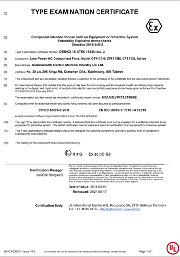 SUNON 交流風扇系列具有風量穩定和長效散熱的特性,從60mm~250mm風扇產品廣泛應用于工業設備、商業設備、冷凍冷藏、醫療設備等。近年來在節能產品發展趨勢下,也發展一系列ECO-EC風扇,采用高效馬達搭配各種控制功能,以達到降低能源消耗的設計需求。并可依客戶系統使用于各種嚴苛環境,提供各種防護等級IP21~IP68防水防塵與ATEX 防爆防護。我們不僅提供專業的產品服務以保障產品長效使用、安全可靠性,同時提供高質量和高效率的最適化交流風扇解決方案以滿足各產業的散熱需求。 超省電 全程轉速管控 在交流風扇應用中,暖通空調、冷凍冷藏、工控等設備均需透過各種控制達到最佳效能與節能的目的,SUNON ECO-EC風扇依應用系統的需求提供不同的控制機制如內建電子回路傳送訊號至客戶系統控制端,隨時偵測散熱風扇的運轉情況;數字控制(PWM)調速設計,實時調整設備使用當下的最佳散熱狀態,有效減少不必要的能源消耗。 大風量 扇葉優化設計 SUNON EC風扇透過專業的扇葉優化設計軟件,仿真優化扇葉的曲度和面積,設計各種不同風量與風流的產品。新一代EC 風扇更更大的扇葉曲度設計,提供更集中的風流,也讓氣流吹得更遠,達到風扇整體的散熱效能升級。 長壽命 MagLev 馬達技術 SUNON MagLev EC風扇透過卓越磁浮馬達的垂直磁浮引力系統,馬達運轉達到定點定軌的穩定運轉軌道,重心穩定較不易搖晃震動,減少軸心與軸承接觸摩擦,再配合VAPO軸承技術,材料和結構皆經強化處理,改善普遍SLEEVE軸承不耐高溫的缺點,讓風扇達到低振動、低噪音、長壽命的多項優點。 MagLev EC風扇應用: 機械設備電控箱、工具機等、醫療實驗室冷藏設備、商用冷凍冷藏、家用冰箱 高等級IP55 & IP68防水防塵風扇 SUNON提供IP55等級的EC風扇以符合高度潮濕的商用冷凍冷藏系統應用環境的需求,確保散熱風扇在高度潮濕的應用環境下還能長時間穩定運作。另外,SUNON的IP68 EC風扇能應用在戶外嚴苛氣候的設備環境如儲能系統、戶外充電站系統,不受鹽霧侵蝕保障散熱風扇可長效運作,SUNON可依客戶系統環境提供最適化高IP防護的EC風扇散熱方案。 風扇應用: 儲能系統、戶外充電站系統、商用冷凍冷藏系統 防爆ATEX新技術 SUNON防爆AC和EC風扇已取得歐盟ATEX防氣爆認證,亦提供客制化ATEX粉塵爆防護設計服務,能在具潛在爆炸風險的應用環境范圍內,直接對電氣設備的使用提供適當有效的安全裝置保護力。 環境永續意識抬頭,傳統冷藏設備使用的HCFC系列冷媒中的氟氯碳化物會破壞臭氧層,已遭各國禁用或減量使用。新世代冷藏設備陸續轉型,無氟的環保冷媒逐漸取代傳統冷媒,由于環保冷媒多為碳氫鹵化物,在常溫常壓下性質穩定不易起火燃燒,但在不同的環境條件下仍具有爆炸的危險性,SUNON的防爆風扇可符合新世代的冷藏系統的使用安全需求。 同時,散熱風扇具備防爆安全性是國際市場的必要條件,SUNON防爆風扇具備無火花防護性*,可應用在具潛在爆炸風險的應用環境如儲能和能源轉換設備系統,當能源系統異常時,可避免造成相關能源系統的損壞或引爆疑慮。另外,SUNON散熱風扇應用在各式工業制造產業內的多數電氣儀器和設備如金屬切割廠等制程,都有可燃粉塵爆炸性的危險,SUNON提供客制化ATEX粉塵爆防護設計服務,保障客戶終端產品的運作質量及使用上安全無虞。 風扇應用: 儲能系統、能源轉換系統、商用冷藏設備工、業制造業 高安全可靠度 符合多項國際安全規范認證 SUNON EC產品銷售各大洲,深知散熱方案使用安全的重要性,為提供海外客戶具高質量防護且無危害性的散熱方案,SUNON EC風扇取得多項國際安規認證項目以符合各海外市場對于輸入產品安全的規范。 風扇品質優化 SUNON EC風扇扇葉采用最適化的材料強度以符合不同應用系統環境溫度的需求,同時強化整體扇葉結構,以確保產品高可靠度。另外,SUNON因應客戶系統不同電壓需求采用泛用型電壓設計(90V~254V),風扇內建自動調節芯片不再需要考慮不同輸入電壓問題,提供客戶系統端的應用便利性。 恒溫性&溫度保護設計 SUNON EC風扇符合商用冷藏設備的適用溫度(-25℃~+70℃),亦提供應用在超低溫的商用冷柜環境(-40℃)的EC風扇方案,穩定散熱以保障冷凍速度快。 SUNON提供多項EC風扇保護設計以確保高質量可靠性,在考慮不同應用環境的電源穩定性,風扇內建電子回路可偵測到系統溫度過高或異常,風扇將自動降低轉速運轉甚至主動停止,避免風扇因過熱而損壞,當故障排除后將恢復正常運作。同時,依客戶端較高溫的應用操作環境如,SUNON EC風扇馬達通過具備絕緣等級F級* (材料零件容許最高溫度為155度)的保護力,確保內部材料不受高溫影響而老化損壞。 SUNON EC風扇系列 應用產業
